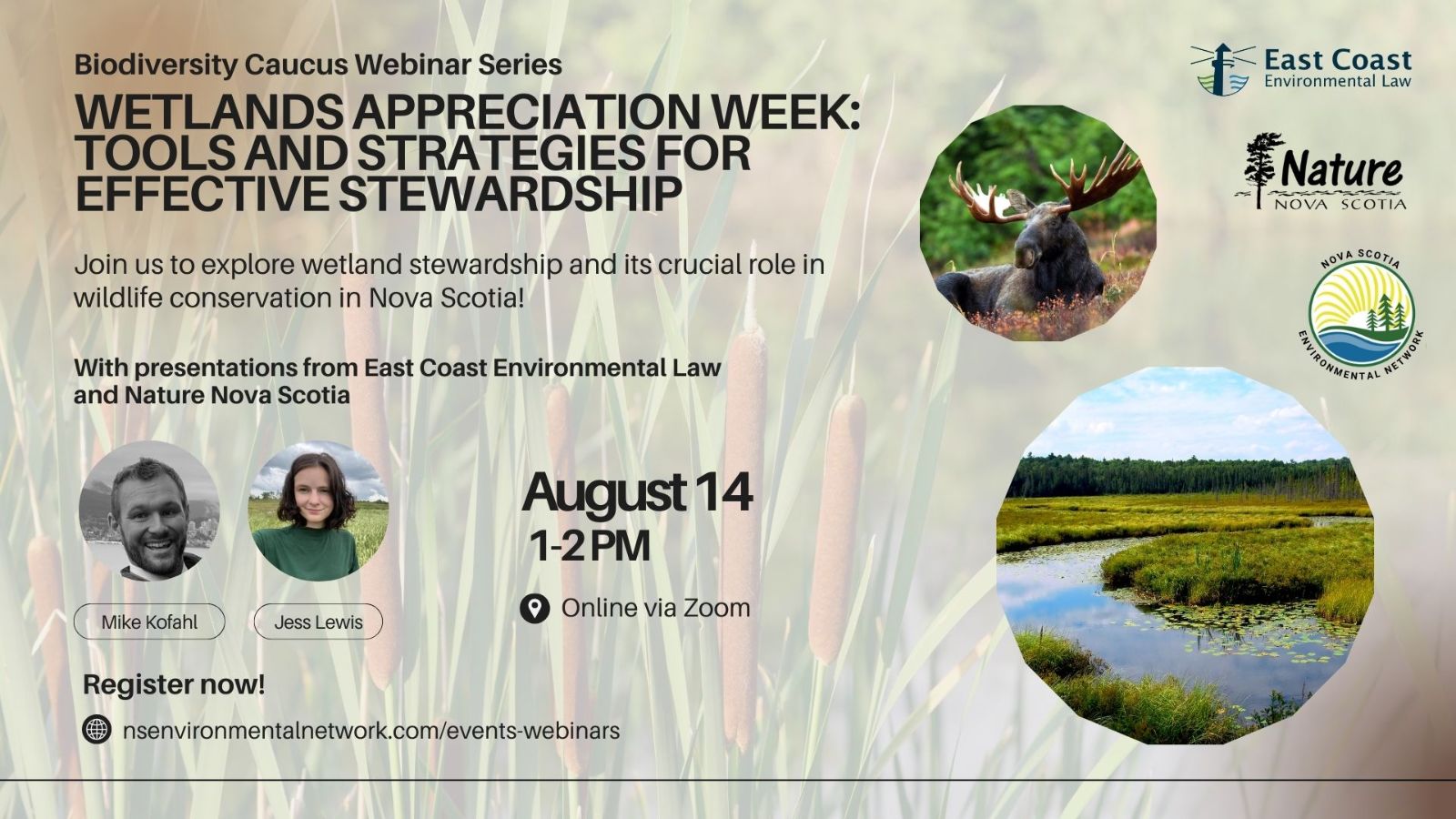 Presented by Mike Kofahl, Staff Lawyer at East Coast Environmental Law, this session offers an overview of the various tools available for wetlands stewardship in Nova Scotia. Key topics include: